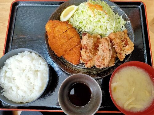 老舗のとんかつ店でとんかつと鶏唐揚げのセットを注文。とんかつと大きめの唐揚げ、ご飯と味噌汁、キャベツ、ソフトドリンク飲み放題までついておよそ1300円! どれも大きめ。さらにご飯とキャベツは食べ放題。 老舗とんかつ店だけあってとんかつがうまい。鶏…