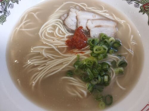 I had a bit of leftover pork bone soup that I made the other day, so I put it in a Ziploc bag and froze it. Today, I thawed that soup and made it into ramen. I used thin noodles for Hakata ramen that are sold at the drugstore. I wish I cou…
