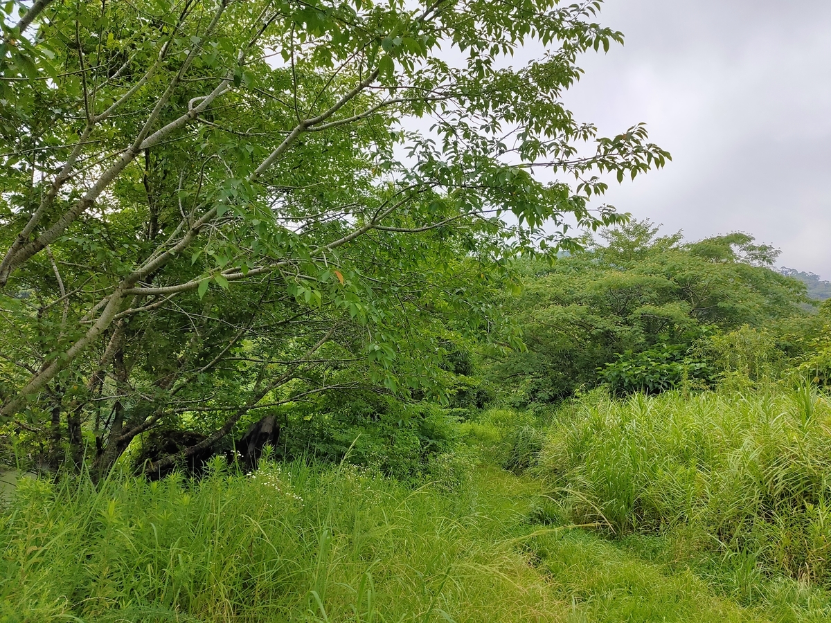 先日届いたマキタ互換バッテリーを使ってキャンプサイト予定地の草刈りを開始。